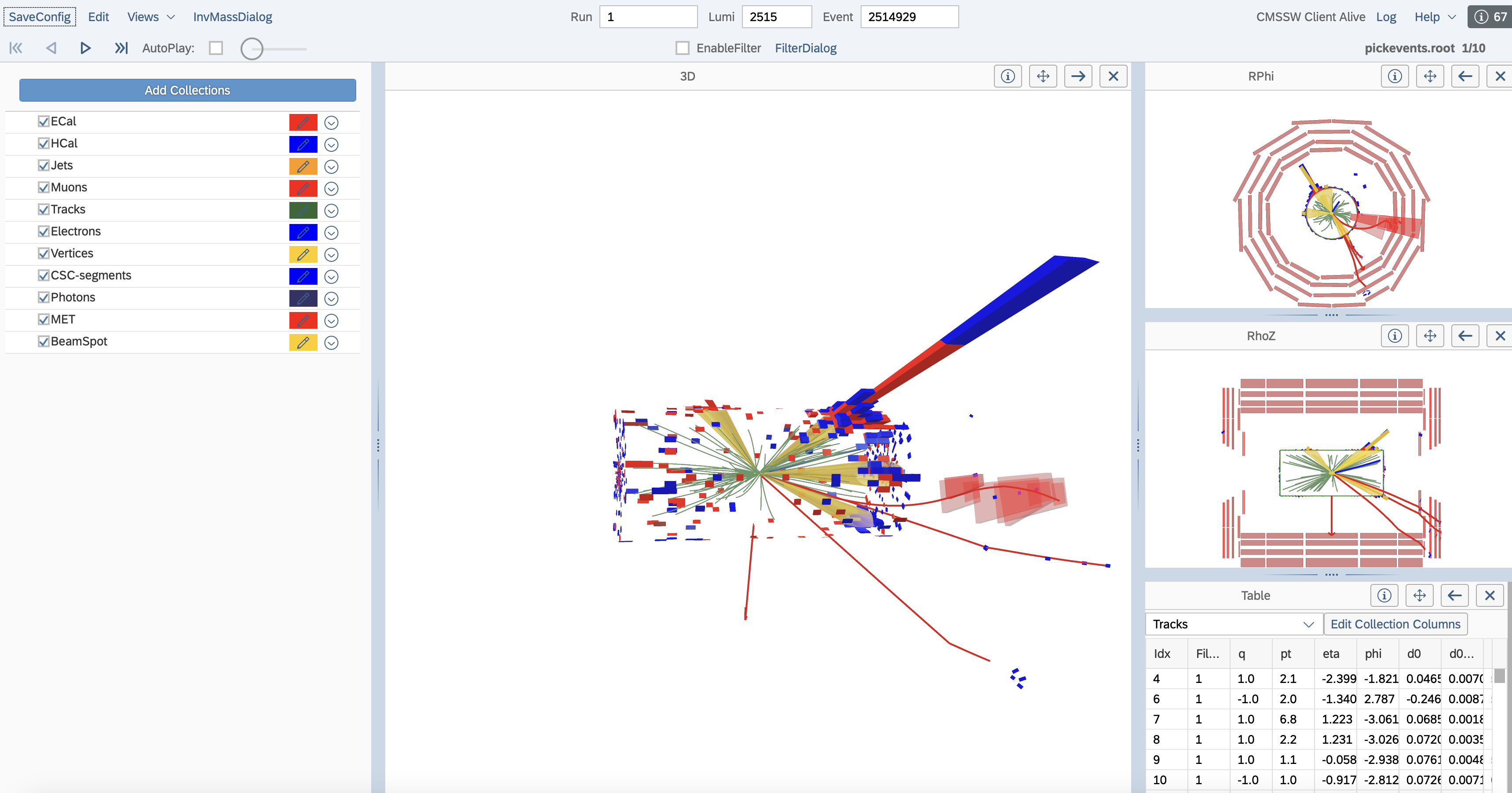 Event displays allow us to view all available collections visually and scrutinize event topologies that are not possible with ntuples