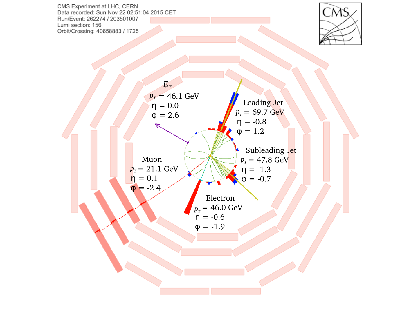 These PF candidates are then used to reconstruct high-level physics objects, including jets and missing transverse momentum (MET).