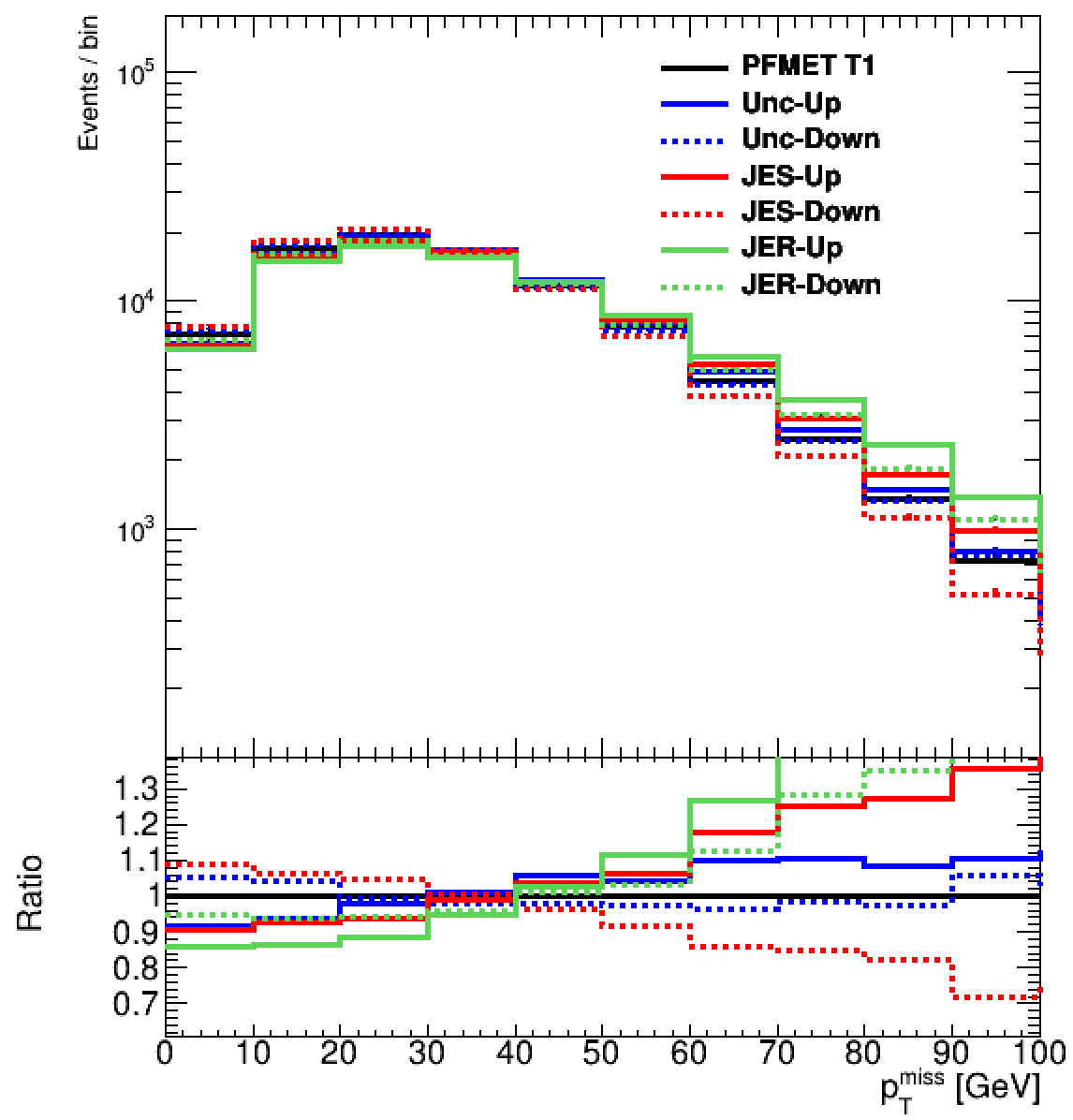 Next, we will focus on Type-1 PF MET and study the impact of various uncertainties, including Unclustered, JES, and JER.
