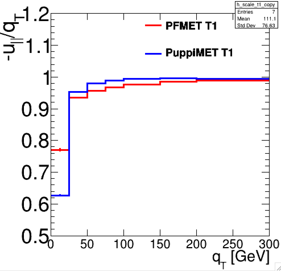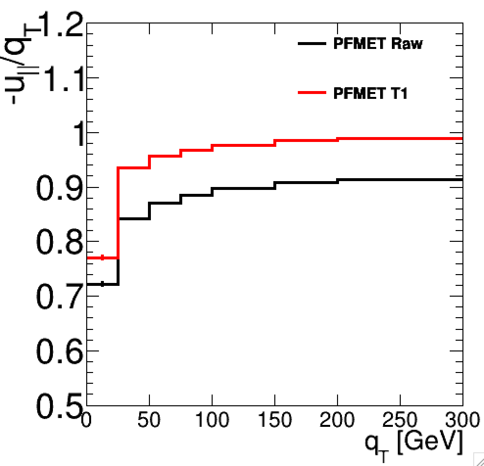 In this exercise, we will measure the scale of the “uncorrected” (raw) PF MET as a function of the transverse momentum of the Z boson (pT(Z)).